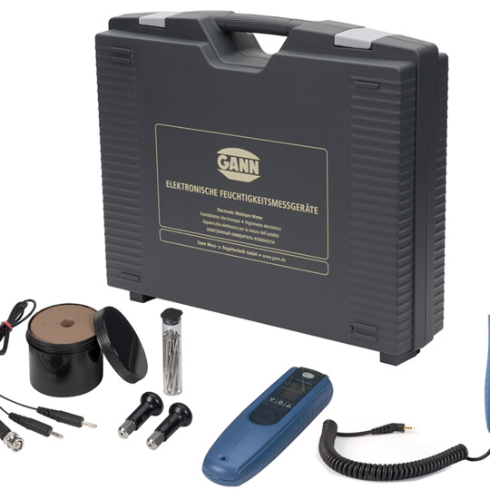 Das Set enthält das Einsteck-Elektrodenpaar M 6 zur widerstandsbasierten Feuchtemessung von verschiedenen harten und weichen Baustoffen. Dieses dient auch als Trägersystem für viele weitere Elektrodenpaare. Ebenso enthalten ist die kapazitive Baufeuchte-Elektrode B 55 BL für zerstörungsfreie Messungen in Baustoffen.