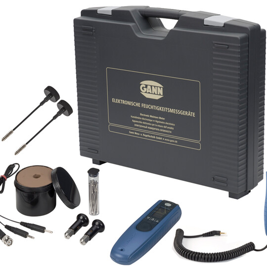 Das Set enthält das Einsteck-Elektrodenpaar M 6 zur widerstandsbasierten Feuchtemessung von verschiedenen harten und weichen Baustoffen. Dieses dient auch als Trägersystem für viele weitere Elektrodenpaare. Ebenso enthalten sind die kapazitive Baufeuchte-Elektrode B 55 BL für zerstörungsfreie Messungen in Baustoffen sowie das Bürsten-Elektrodenpaar M 25-100 zur Messung von Baufeuchte in harten, abgebundenen Baustoffen.