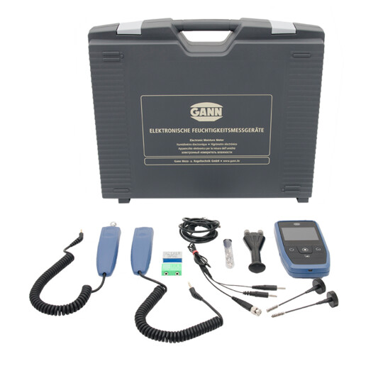 This set includes the M 20 drive-in probe for resistance-based moisture measurement of various types of wood and wood-based materials up to a thickness of 50 mm or for measuring in soft building materials. Also included are the B 55 BL capacitive building moisture probe for non-destructive measurement in building materials as well as the M 25-100 brush probe pair for measuring building moisture in hard, set building materials. The package also contains the TF-IR BL combo probe for simultaneously measuring climate (air humidity and air temperature) and surface temperature without contact.