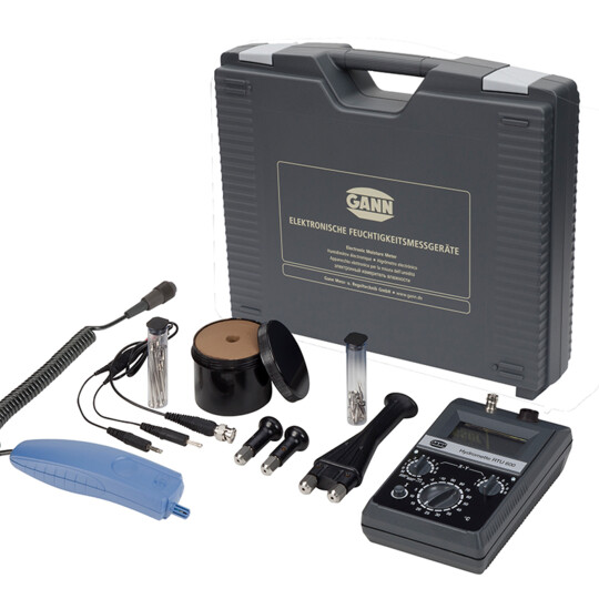 This set includes the M 6 stick-in probe pair for resistance-based moisture measurement of various hard and soft building materials. It also serves as a carrier system for many other probe pairs. Also included are the M 20 drive-in probe for resistance-based moisture measurement of various types of wood and wood-based materials up to a thickness of 50 mm or for measuring in soft building materials, as well as the RF-T 28 EL climate probe for humidity and air temperature measurements.
