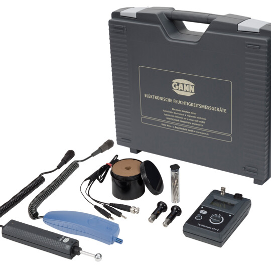 This set includes the M 6 stick-in probe pair for resistance-based moisture measurement of various hard and soft building materials. It also serves as a carrier system for many other probe pairs. Also included are the B 50 capacitive building moisture probe for non-destructive measurement in building materials as well as the RH-T 37 EL 160 climate probe for air humidity and air temperature measurements (also in pre-drilled holes).